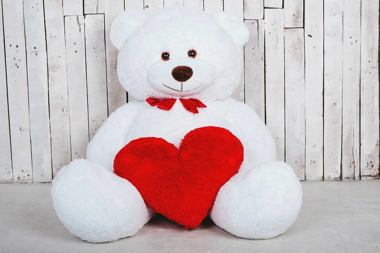 Большой плюшевый мишка с сердечком Yarokuz Джеральд 165 см Белый
