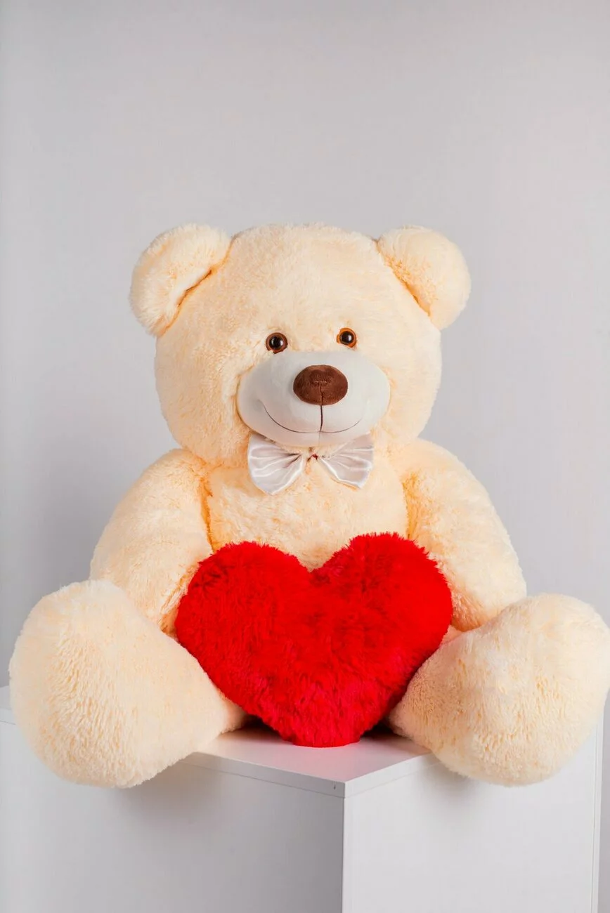 Мишка плюшевый с сердечком Yarokuz Джон 110 см Персиковый