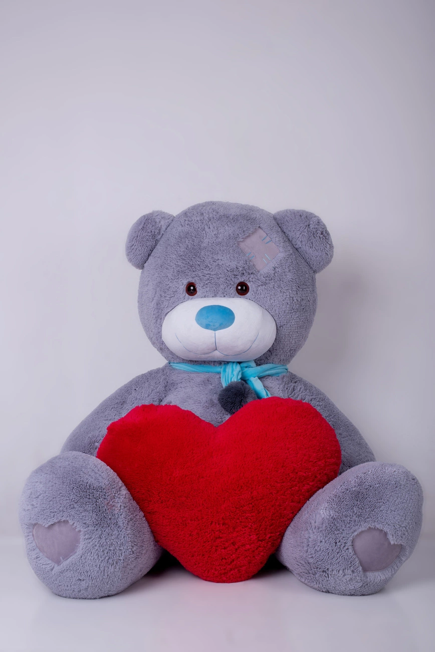 Мишка с латками плюшевый с сердцем Yarokuz Дональд 2 метра Серый