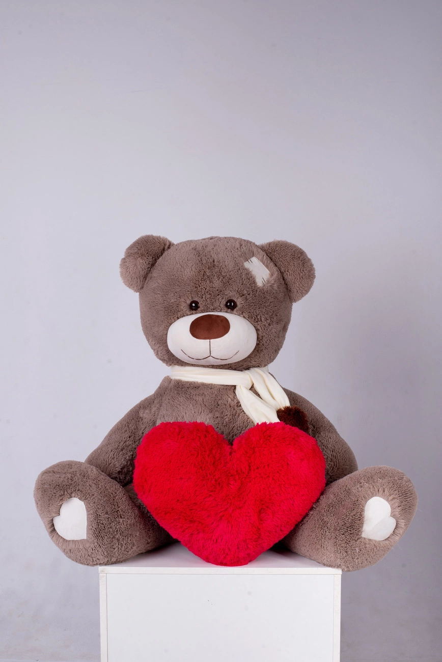 Мишка с латками плюшевый с сердцем Yarokuz Джозеф 140 см Капучино