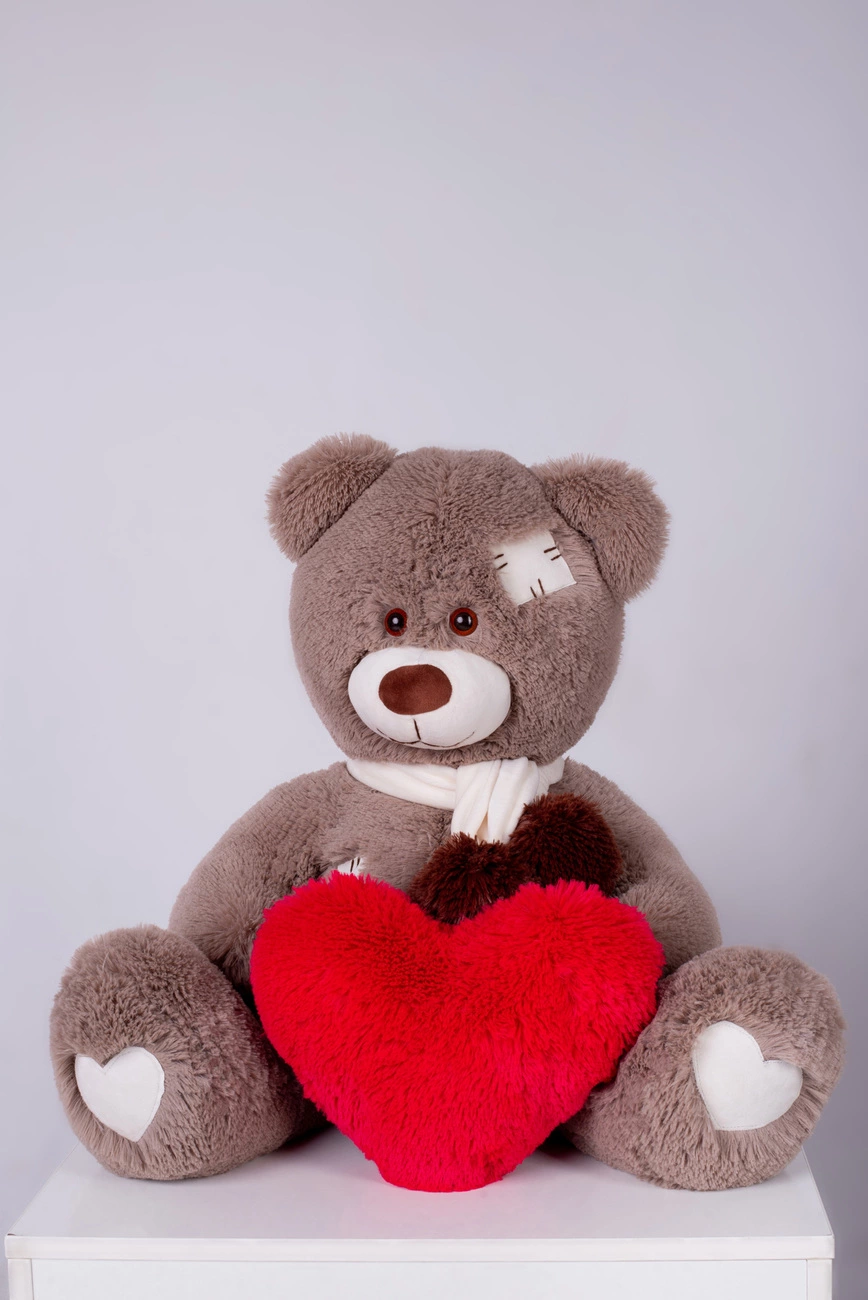 Мишка с латками плюшевый с сердцем Yarokuz Уолтер 80 см Капучино