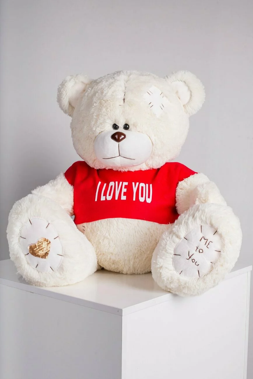 Мишка с латками плюшевый в футболке Yarokuz Me To You 100 см Молочный