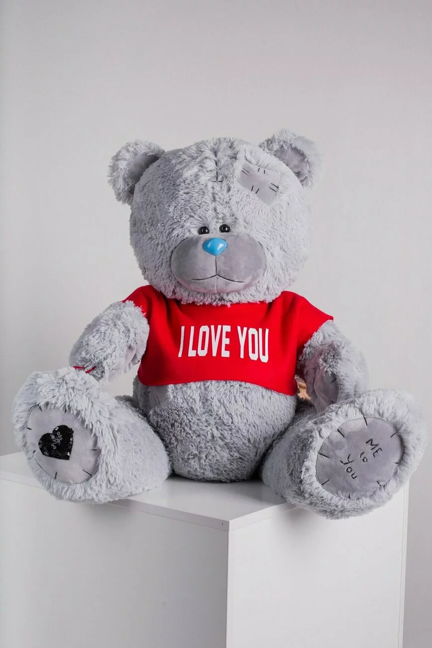 Мишка с латками плюшевый в футболке Yarokuz Me To You 100 см Серый