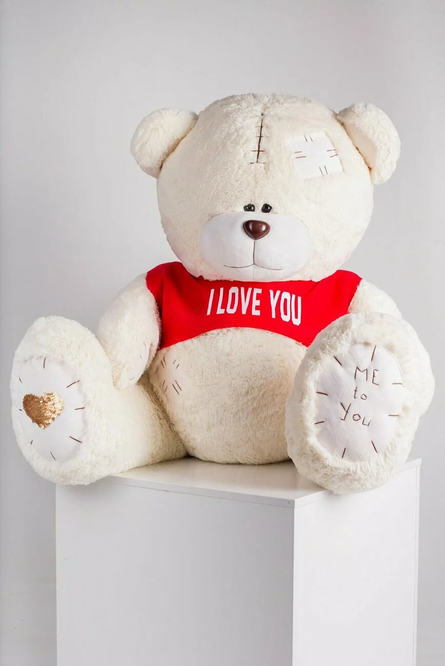 Мишка с латками плюшевый в футболке Yarokuz Me To You 160 см Молочный