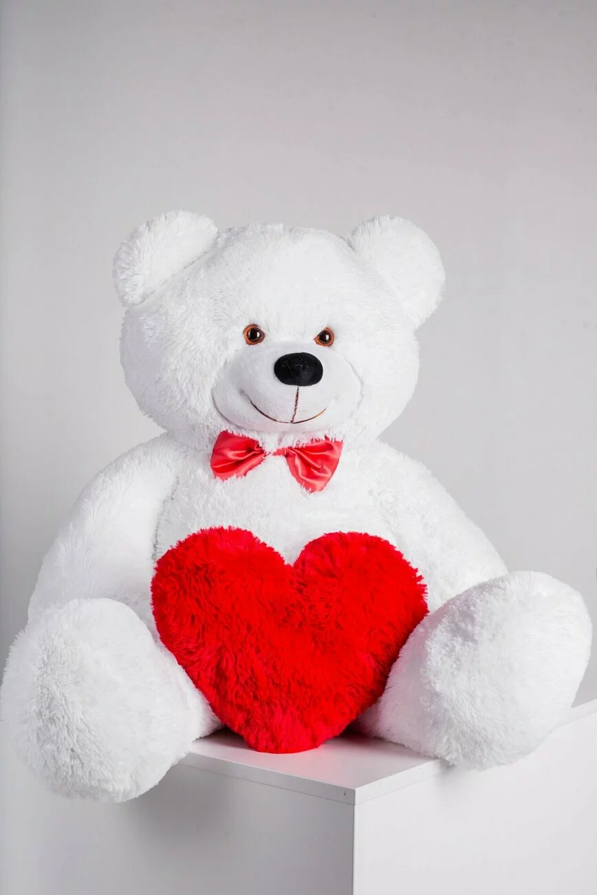 Мишка с сердечком Yarokuz Джон 110 см Белый