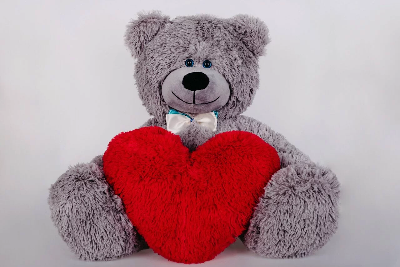 Плюшевый мишка с сердечком Yarokuz Джеймс 65 см Серый