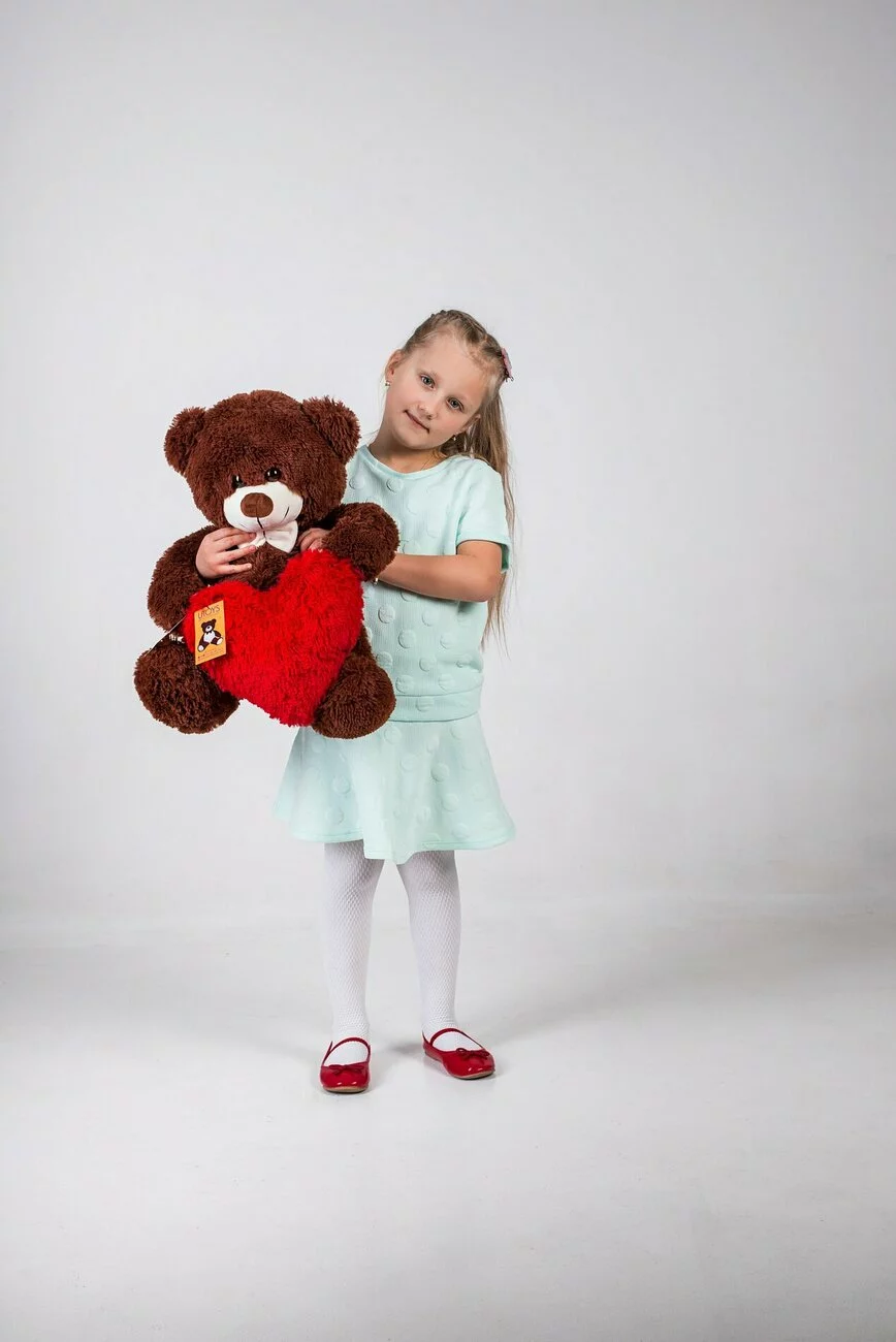 Плюшевый мишка с сердечком Yarokuz Джеймс 65 см Шоколадный